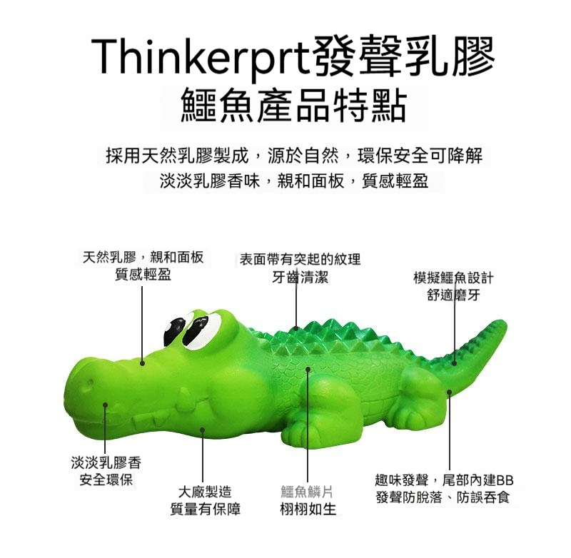 你家毛孩還在玩無聊的舊玩具嗎?是時候給牠一位新「夥伴」了!天然乳膠製作的鱷魚發聲玩具,磨牙潔齒 ✅ 獨特造型,互動性強 ✅ 逼真發聲,吸引狗狗注意力 ✅ 柔軟【天然】乳膠,耐咬不傷牙