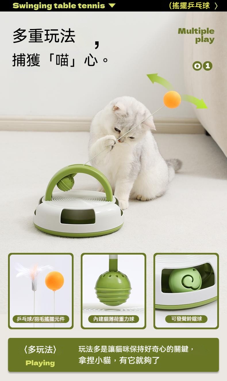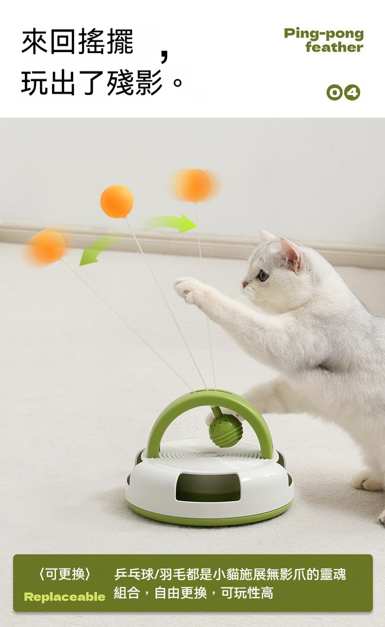 拯救家裡的沙發和窗簾的貓咪玩具來啦!輕鬆讓小貓咪迷上它 ✅ 搖擺兵兵球+搖擺羽毛 ✅ 靈活慣性搖擺,永動機模式 ✅ 超耐磨耐抓 → 讓「破壞王」也無從下手! ✅ 靜音設計 → 不打擾你休息,只消耗貓咪的精力!