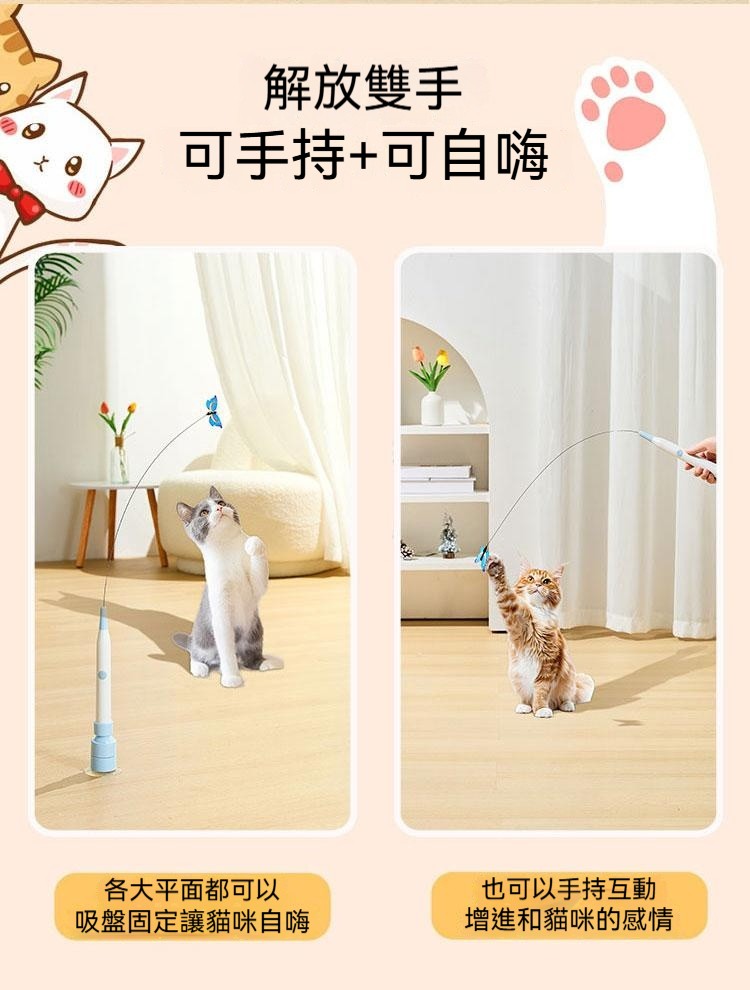 解放雙手的逗貓神器來啦!---全自動蝴蝶逗貓棒,放地上、放墻上等都可以 ✅模擬真實獵物 ✅充電/USB續航 ✅全自動/解放雙手 ✅布質蝴蝶耐抓耐咬