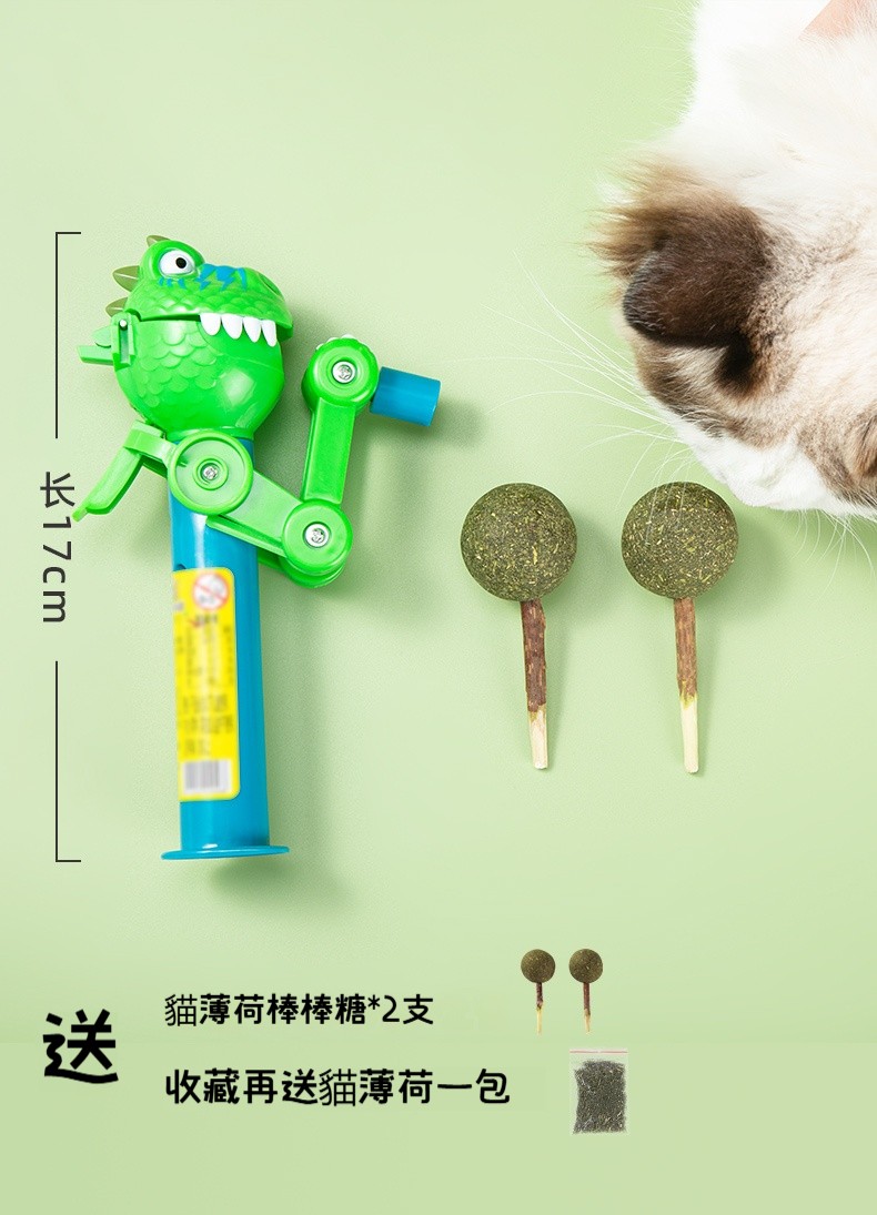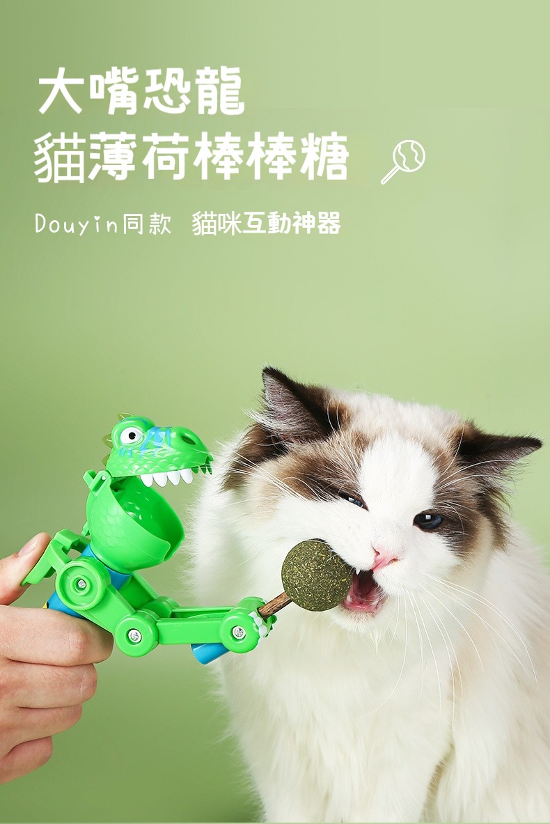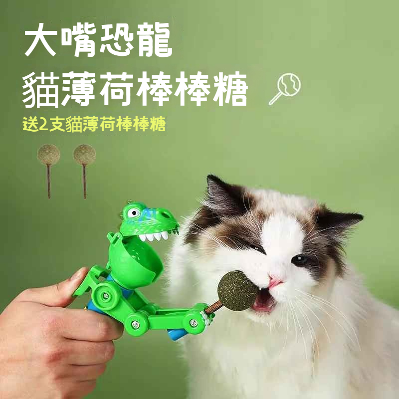 【恐龍逗貓棒】 大嘴恐龍貓薄荷棒棒糖套裝 | 貓咪磨牙棒 | ❤️互動趣味機器人 | 自嗨解悶玩具